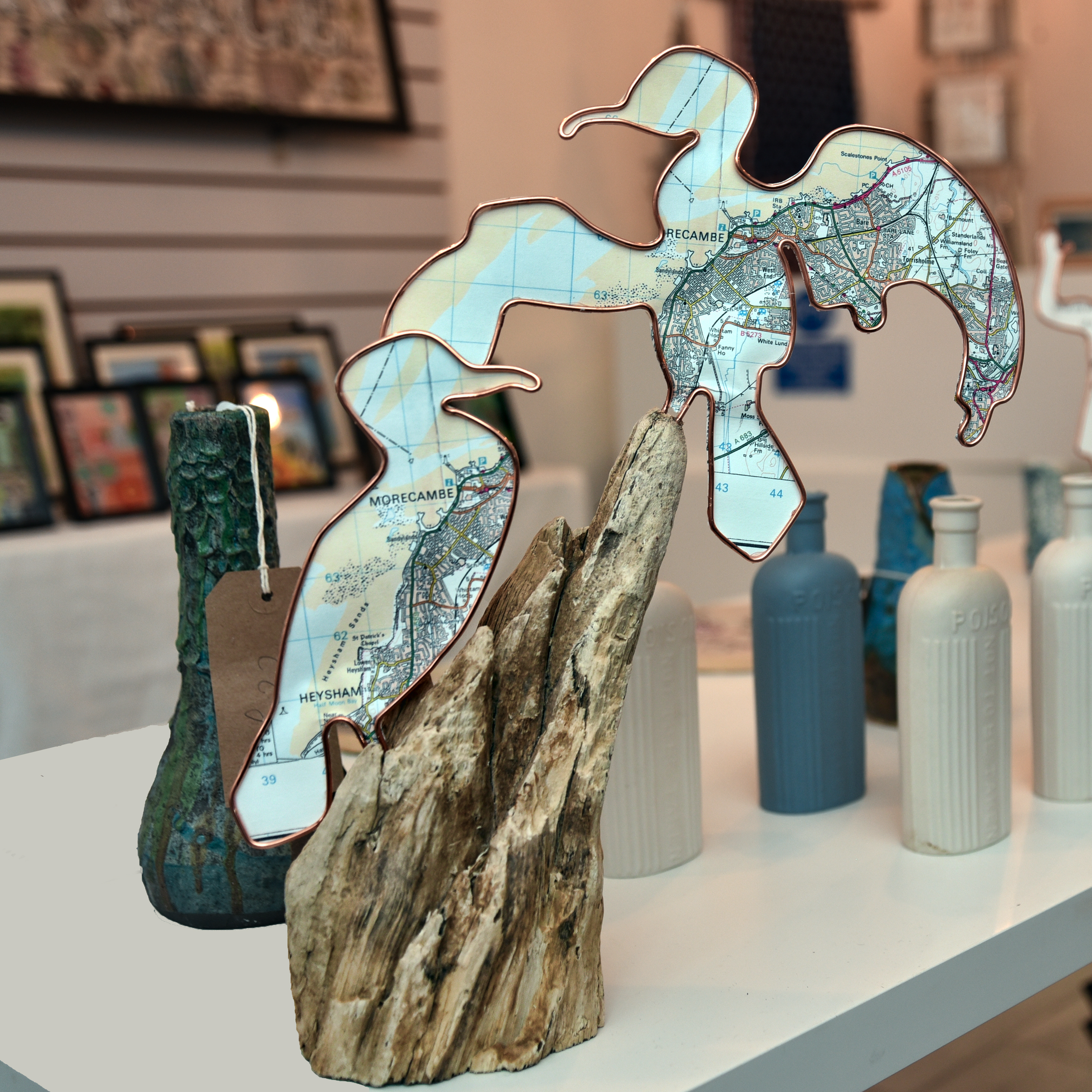 Handmade Wire Sculptures Embellished with Local Maps